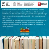 „Dofinansowania dla bibliotek publicznych na zakup nowości wydawniczych oraz usługi zdalnego dostępu do książek w formatach e-booków i/lub...